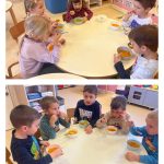 romatrali smo bundevu izvana i iznutra, rezali je, istraživali njezinu boju, strukturu i miris te mjerili i vagali kako bismo usporedili veličine. Djeca su sudjelovala u kuhanju ukusne juhe od bundeve, a zatim smo kroz likovne aktivnosti stvarali različite radove inspirirane njenim oblicima i bojama.